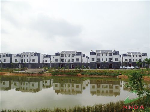 沿着宽敞的柏油路走进经开区吴圩镇坛白村茶柳坡生态综合示范村,景色让人眼前一亮。茶柳新村建设项目占地面积约54亩,共建59栋住宅,所有的住宅楼全部是庭院组团式布局的广西壮族民居风格建筑。该示范村将建成集旅游、观光、休闲及儿童主题乐园于一体的休闲基地。
