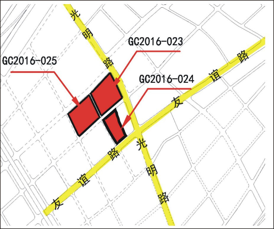 (一)GC2016-023地块位于经开区光明路西侧、友谊路北面,宗地号:450105102001GB00195;出让面积85820.28平方米(折合128.730亩),土地批准用途:城镇住宅用地、批发零售用地;土地使用年限:城镇住宅用地70年、批发零售用地40年。
