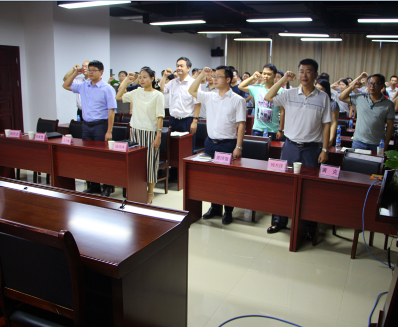 会上,还举行了重温入党誓词活动,公司全体党员面对党旗,举起右手,庄严严宣,全体党员充满激动的心情,重温了自己宣誓加入中国共产党的那一刻。