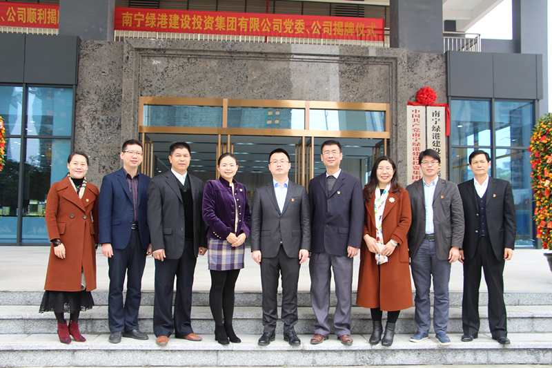 经开区党工委书记、管委会主任何尚汉,经开区党工委副书记覃传财,MK国际党委书记、董事长、总经理龚国强,MK国际副总经理陆羿冰共同为MK国际党委、公司揭牌