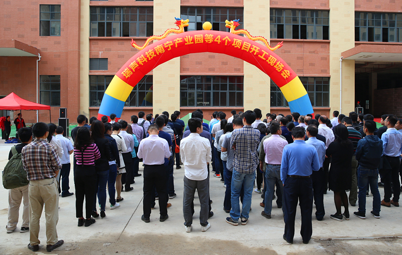 4月27日上午,南宁经开区在瑞声科技南宁产业园项目现场举行2018年第四次重大项目开(竣)工仪式。仪式由南宁市市政府副秘书长田家全主持,南宁市副市长朱会东宣布项目开工。经开区党工委书记、管委会主任何尚汉,经开区党工委、管委会领导,各相关部门领导、开工项目企业代表约150人出席仪式,共同见证了这一喜庆时刻。