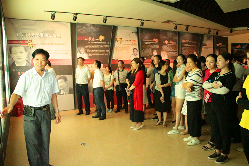 在展厅解说员的引导下,全体干部职工依次参观了展厅。通过参观学习风范篇中展示的中国古代廉政典范、领导风范、领导楷模、纪检先锋以及警示篇展示的反腐败重大案例、广西职务犯罪典型案例、渎职犯罪案例、违反中央八项规定精神案例等反面典型案例,使干部职工看到了腐败分子淡薄法纪、贪婪钱财、滥用权力,逐步走向犯罪深渊的过程,让大家心灵上受到了强烈的震撼,深刻感受到法律的威严。