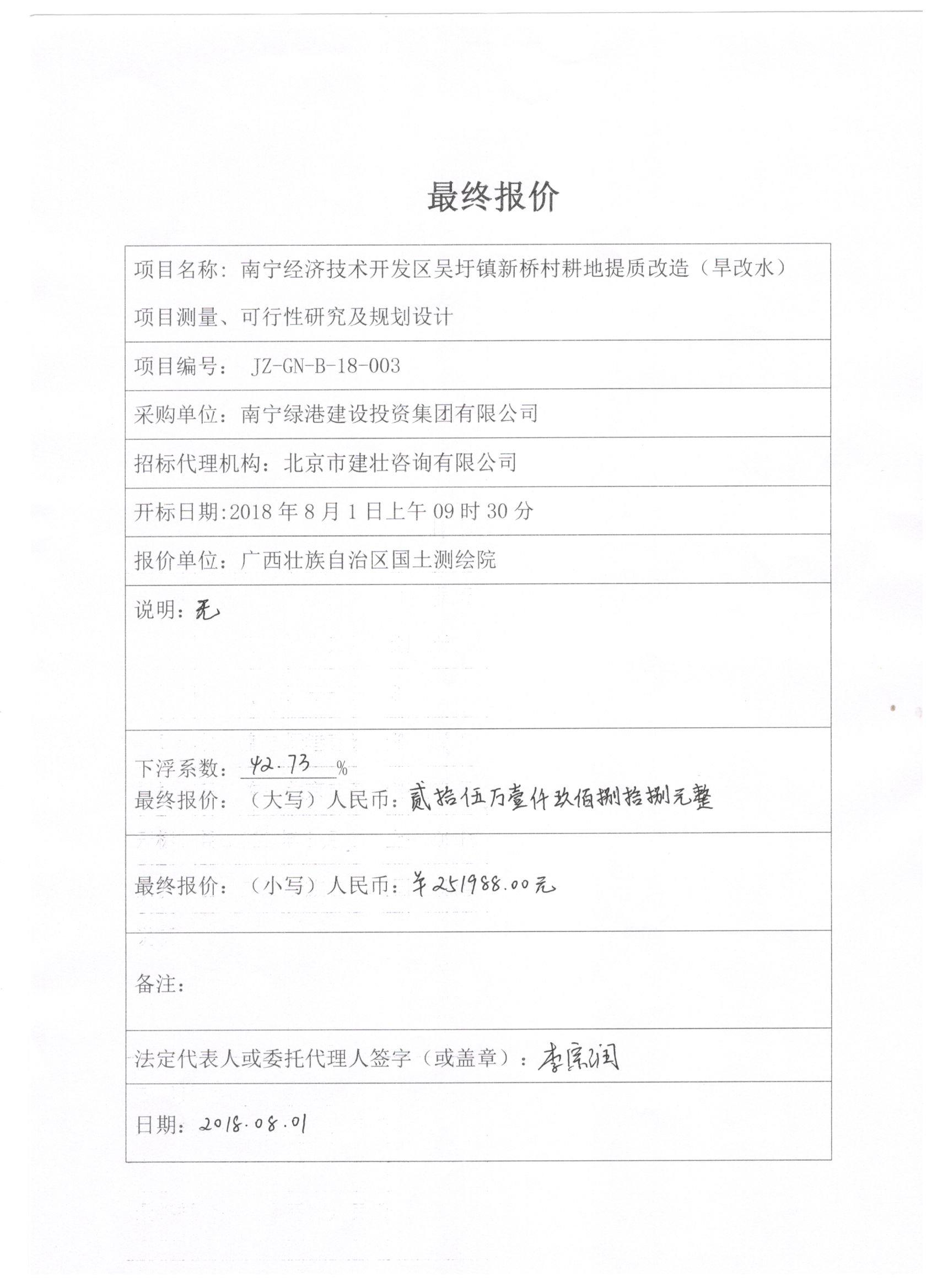 一、采购项目名称及编号:南宁经济技术开发区吴圩镇新桥村耕地提质改造(旱改水)项目测量、可行性研究及规划设计(项目编号:JZ-GN-B-18-003)