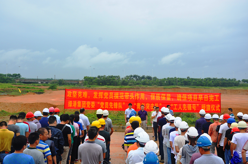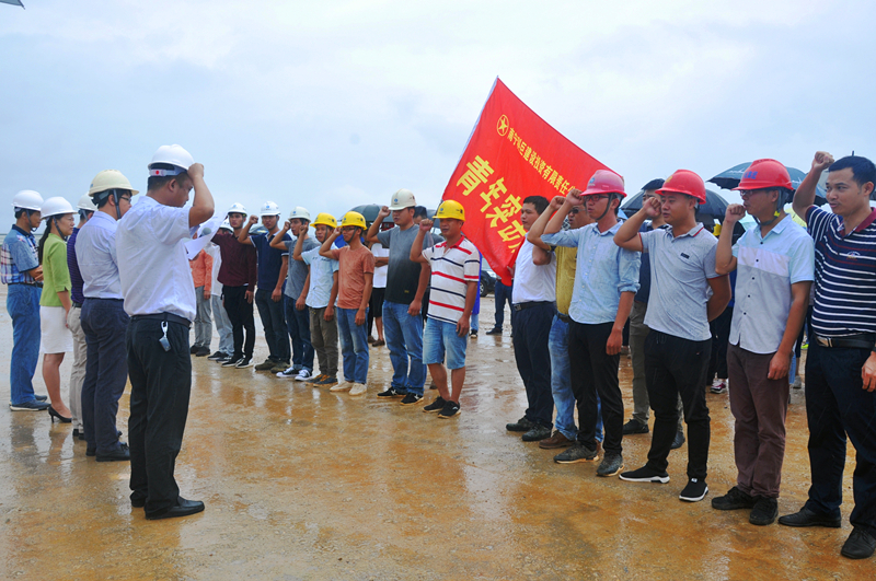 当天,细雨蒙蒙,MK国际党委书记、董事长、总经理龚国强在项目现场给参建党员授予了“党员先锋队”旗帜,给参建团员青年授予了“青年突击队”旗帜,MK国际副总经理、工会主席黄丽琴给吴圩空港经济区重点项目推进组授予了“工人先锋号”锦旗,激励广大党员干部青年同志们要以强烈的政治责任感、立足本职岗位,充分发扬不怕吃苦、勇于负重,敢打硬仗、能打硬仗的“绿港铁军”优良传统,为吴圩空港经济区项目建设做贡献。