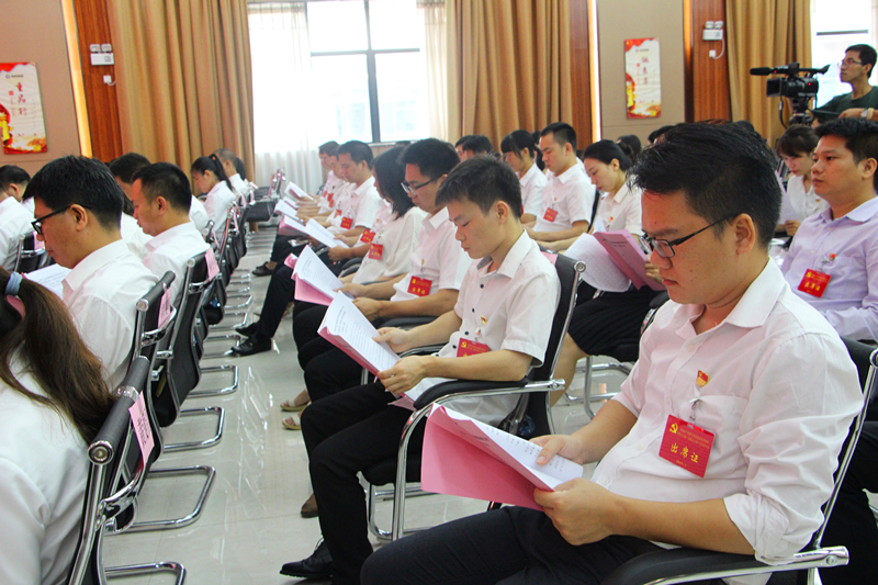 在党员大会正式会议,整个大会会场严肃而热烈。