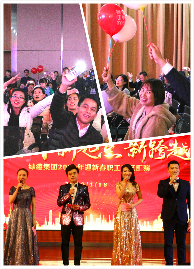 随后,集团总部喜庆欢腾的舞剧《鼠舞龙腾闹新春》拉开了MK国际2020年职工文艺汇演的序幕,集团领导班子,集团各部门、各子公司干部员工接连登场,以17个内容丰富、积极向上的文艺节目同贺新春。通过舞蹈、音乐情景剧、歌曲、小品、诗朗诵、文化展示等形式,充分展现绿港铁军勇于拼博、团结奋进的风采和广大职工团结上进的精神风貌。《绿港建设者》以铿锵有力的舞蹈,表现出奋战在经开区建设一线的绿港人攻难克艰的决心和担当的气魄;科巨公司带来的《大话西游之治理黑臭水体》则讲述了绿港铁军在打赢黑臭水体攻坚战中,挺身而出,争做攻坚排头兵的故事;集团营销管理中心的歌曲串烧、科巨公司《 We Will Rock You》、嘉通公司《上海滩》和荣鑫公司的《荣鑫似首歌》不仅让我们一睹国风、爵士风、上海滩和怀旧港风的风采,一句“绿港飞得更高”的高歌更是把全场气氛带到了最高点!舞蹈《芒种》、《桥边姑娘》和万方公司《溜溜的山寨溜溜的醉》是柔情万种,百转千回;小品《你有没有在乎过我的感受》、《家有儿女》取材日常生活,表达了家和百事兴的主题;九略公司《中华攒 瑰宝情》通过对中华传统文化的展示,激发了广大职工的文化自信;集团办公室、中港兴公司联合准备的节目《我们是一家人》通过手语舞蹈表现出集团公司团结一心,同事间真诚有爱的良好面貌,让大家沉浸在一片爱的海洋之中;嘉通公司的朗诵《青春万岁》则透过稚嫩的童声带大家重返美好的青葱岁月。各节目精彩纷呈,引得台下观众呼声连连。最后,节目表演在集团公司领导班子带来欢乐活泼的舞蹈《爱》中告一段落,现场四处洋溢着欢乐祥和的气氛。