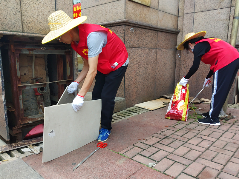 志愿者清扫沿街铺面卫生死角