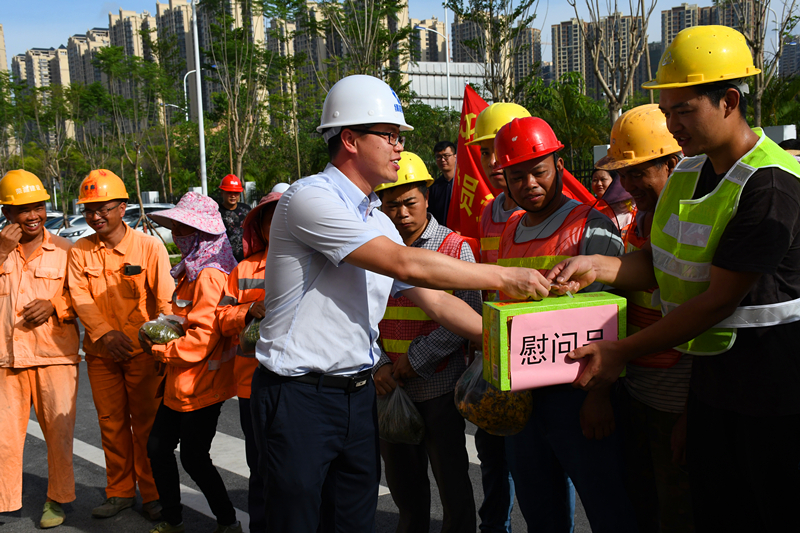 此次“一线送清凉”活动,集团党委、集团工会和荣鑫公司党支部为一线劳动者送去了藿香正气液、王老吉清凉饮料、西瓜和菊花、罗汉果等清凉慰问品,为沉闷炎热的工地送去清凉和关爱。