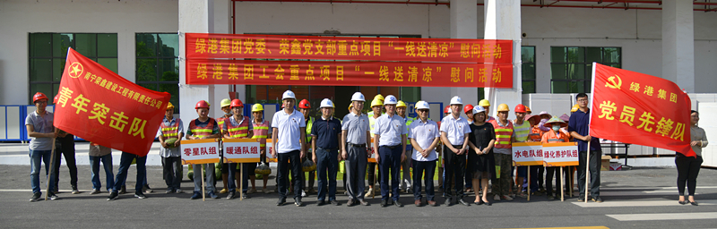 6月24日上午,MK国际党委带领集团工会、荣鑫公司党支部深入南宁市和经开区重点建设的音卓装修项目现场开展以“送清凉、战疫情、抢工期”为主题重点项目 “一线送清凉”慰问活动。