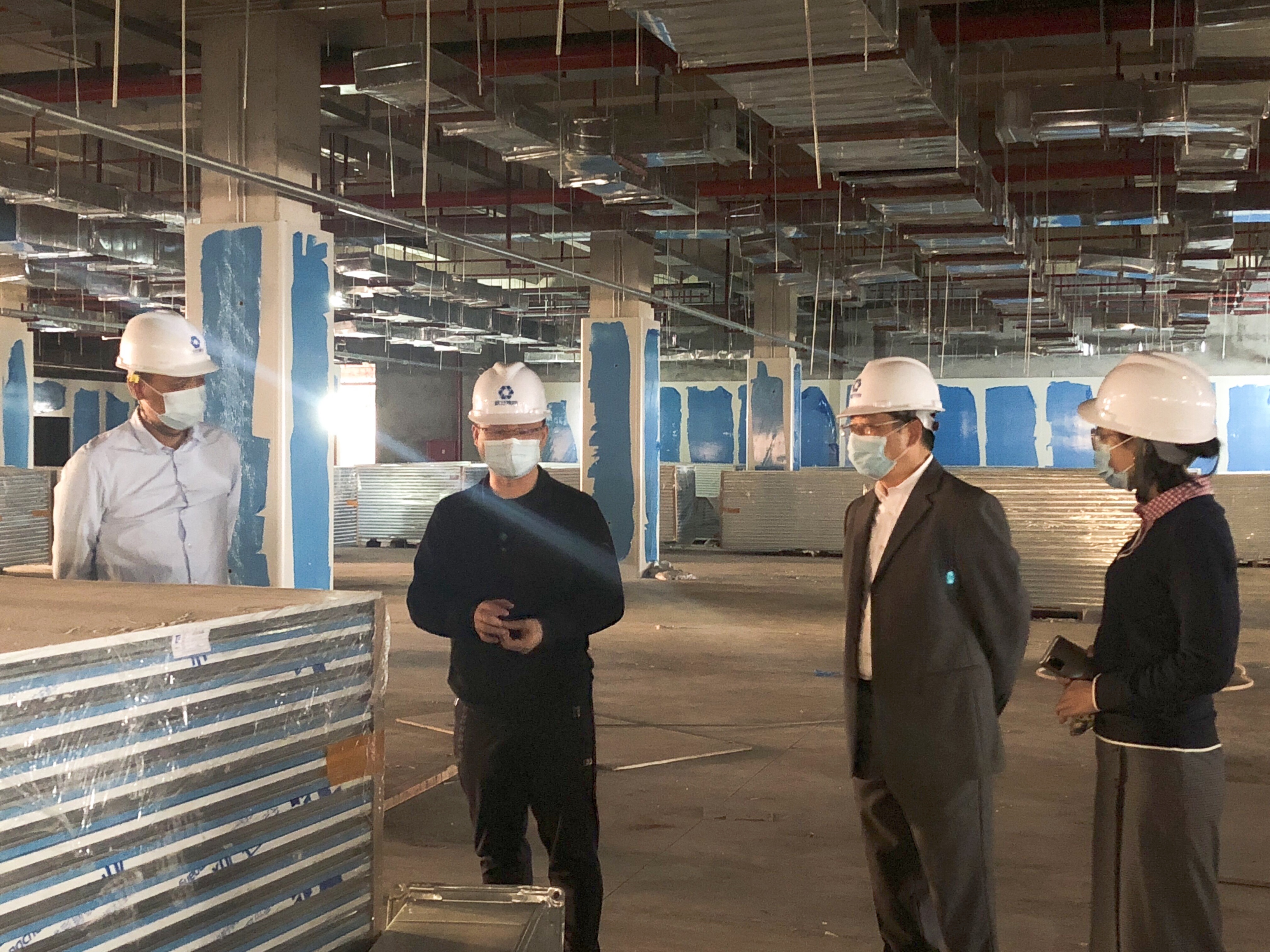 MK国际党委书记、董事长龚国强,党委委员、副总经理陆羿冰到瑞声三期装修项目检查工程进度