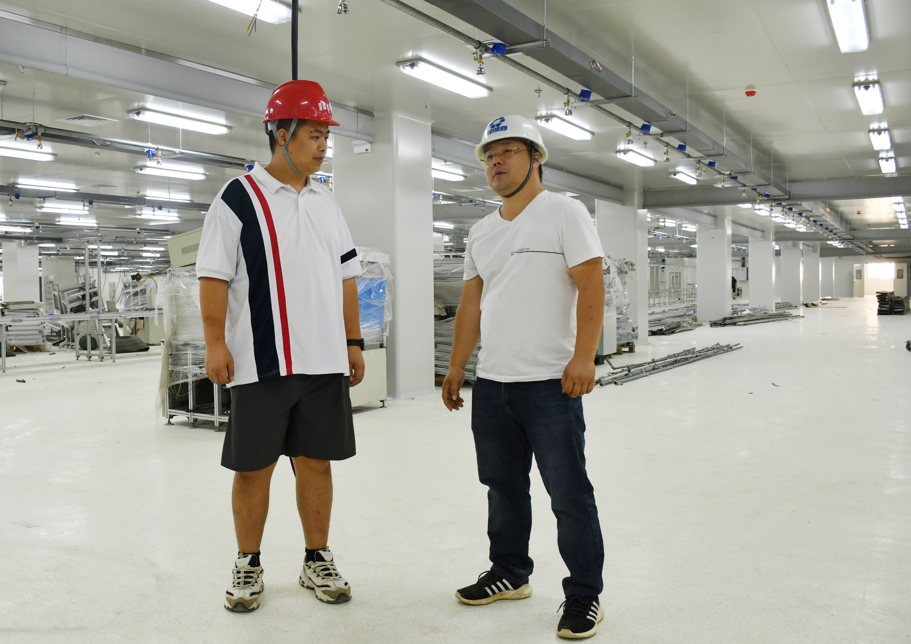 项目开工建设后,他时常召集项目成员研究探讨优质高效的施工技术、多工种交叉施工作业等施工方案,“5+2”、“白加黑”地赶工建设,仅用60天,确保了项目第一阶段9号厂房1、2层装修施工任务于2018年6月28日圆满完成。在2018年9月10日的瑞声厂区举行项目投产仪式,南宁市委王小东书记宣布项目正式投产。王小东书记、瑞声公司潘董事长都对项目建设工作给予高度评价,称其为“南宁速度”。