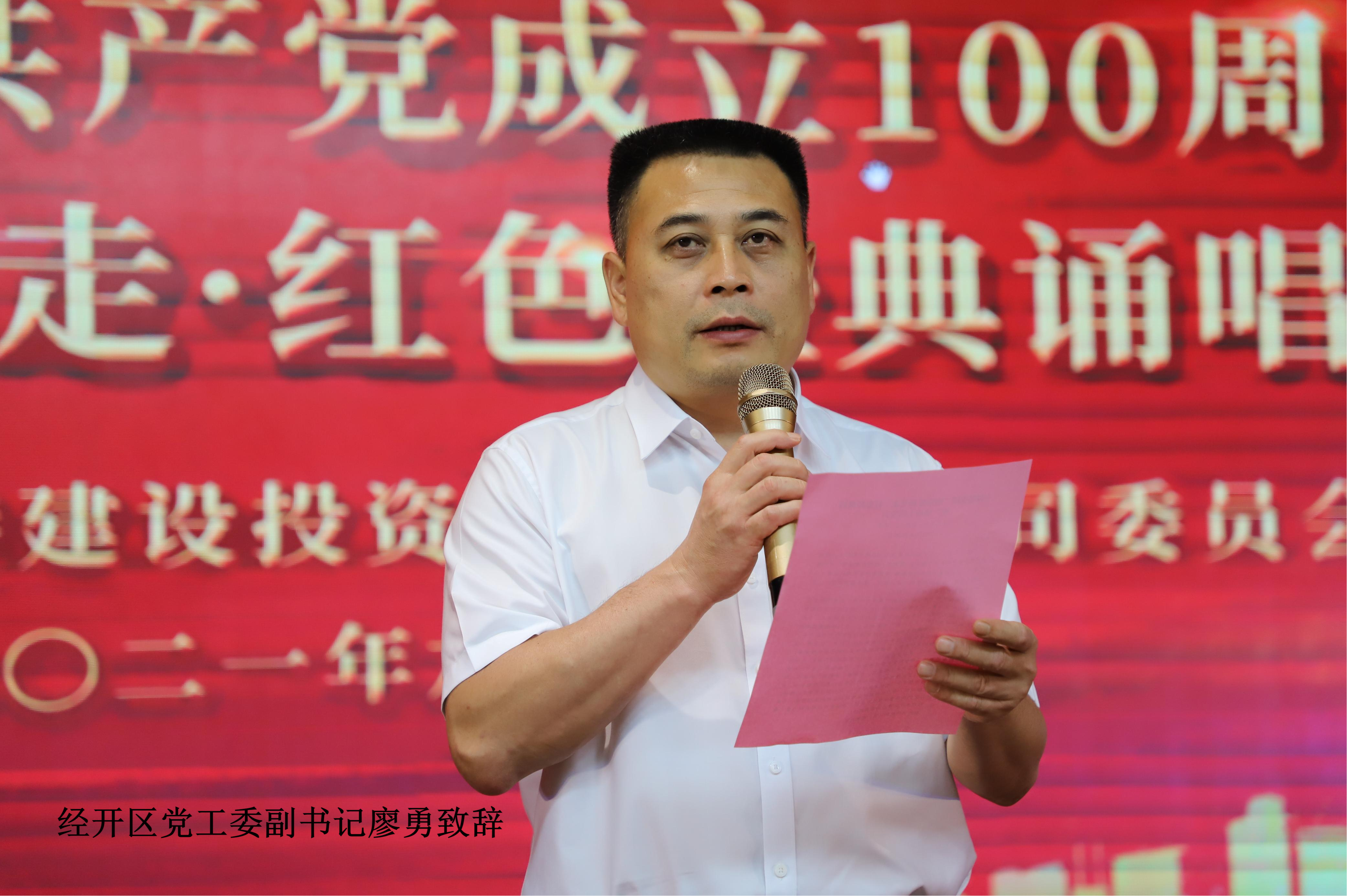 经开区党工委副书记廖勇在活动致辞中表示,MK国际作为南宁经开区的下属平台公司,是南宁经开区发展的中坚力量。作为国有企业的一份子,每位党员都有责任、有义务把红色基因传承下去,把红色文化发扬光大。希望全体党员同志要牢记使命责任,更加发奋进取,以本次党建活动为契机,主动将红色经典诵唱融合到党史学习教育中,严格按照习总书记对党史学习教育“学党史、悟思想、办实事、开新局”的要求,铭记光辉历史,坚定理想信念,担起时代责任,勇于砥砺奋斗,发扬为民服务孺子牛、创新发展拓荒牛、艰苦奋斗老黄牛的精神,立足本职岗位,奋力书写新时代建设新征程的美丽答卷,为南宁经开区的高质量发展以及实现广西强首府战略贡献力量。