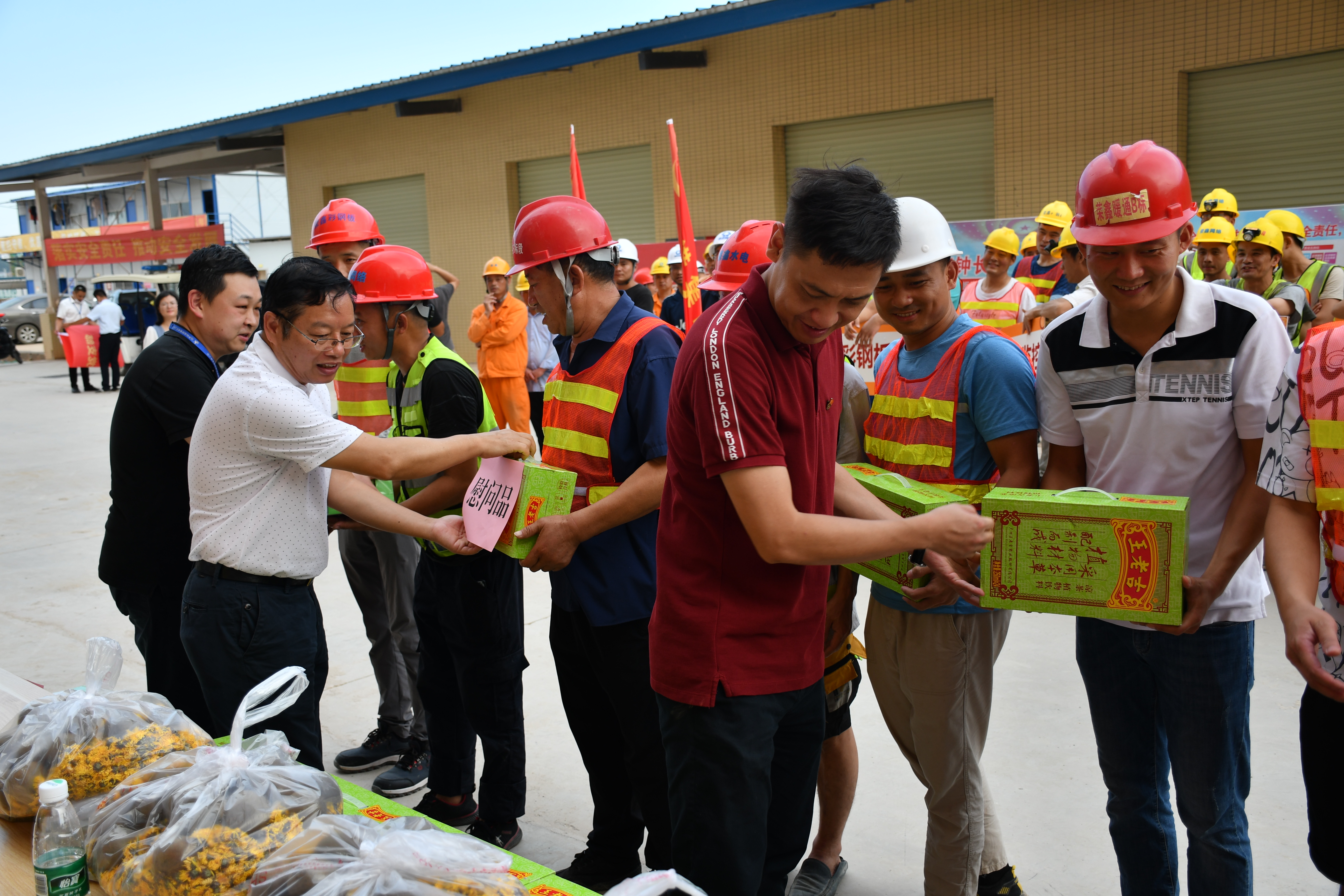 最后,荣鑫公司领导班子与瑞声公司相关领导一起为一线劳动者送上了藿香正气液、王老吉清凉饮料、西瓜和菊花、罗汉果等清凉慰问品,为沉闷炎热的工地送去一片清凉。