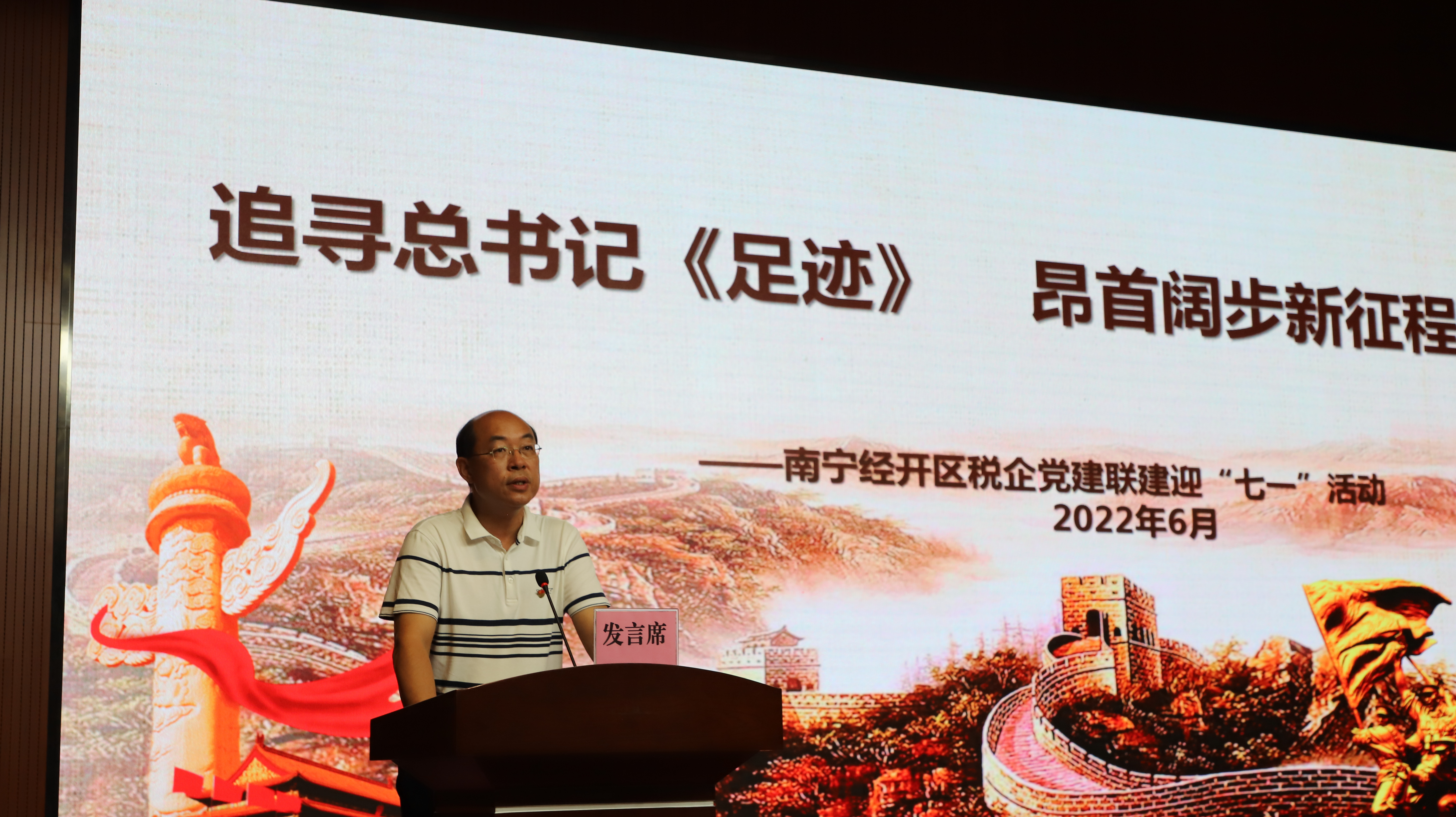 参加活动的全体党员认真观看央视《组合式税费支持政策助企纾困成效显现》视频。经开区税务局党委书记、局长胡大洪介绍税务部门党建引领促减税降费落地落实,表示在贯彻落实党中央、国务院税费减免政策上,经开区税务局行动快速、措施有力,成立了留抵退税“党员突出队”和“青年先锋队”,发挥党团员先锋和表率作用,确保国家的惠企政策落到实处,让广大市场主体充分、便捷地享受到政策红利。MK国际、中外运广西有限公司陆运事业部、南宁恒枫饮料有限公司3个企业党员代表分别上台作交流。MK国际荣鑫公司党支部书记李汝埠表示,政策红利也是中小企业发展的一大助力,今年4月份以来,我国实施组合式税费支持政策,经开区税务局积极促进这一政策落地落实,作为MK国际下属的荣鑫公司切实享受到政策红利,疫情防疫常态化的当下,不少中小企业都遇上许多难题,希望税务部门在税务方面着力为纳税人解难题,确保企业能享会享、应享尽享税收优惠政策。