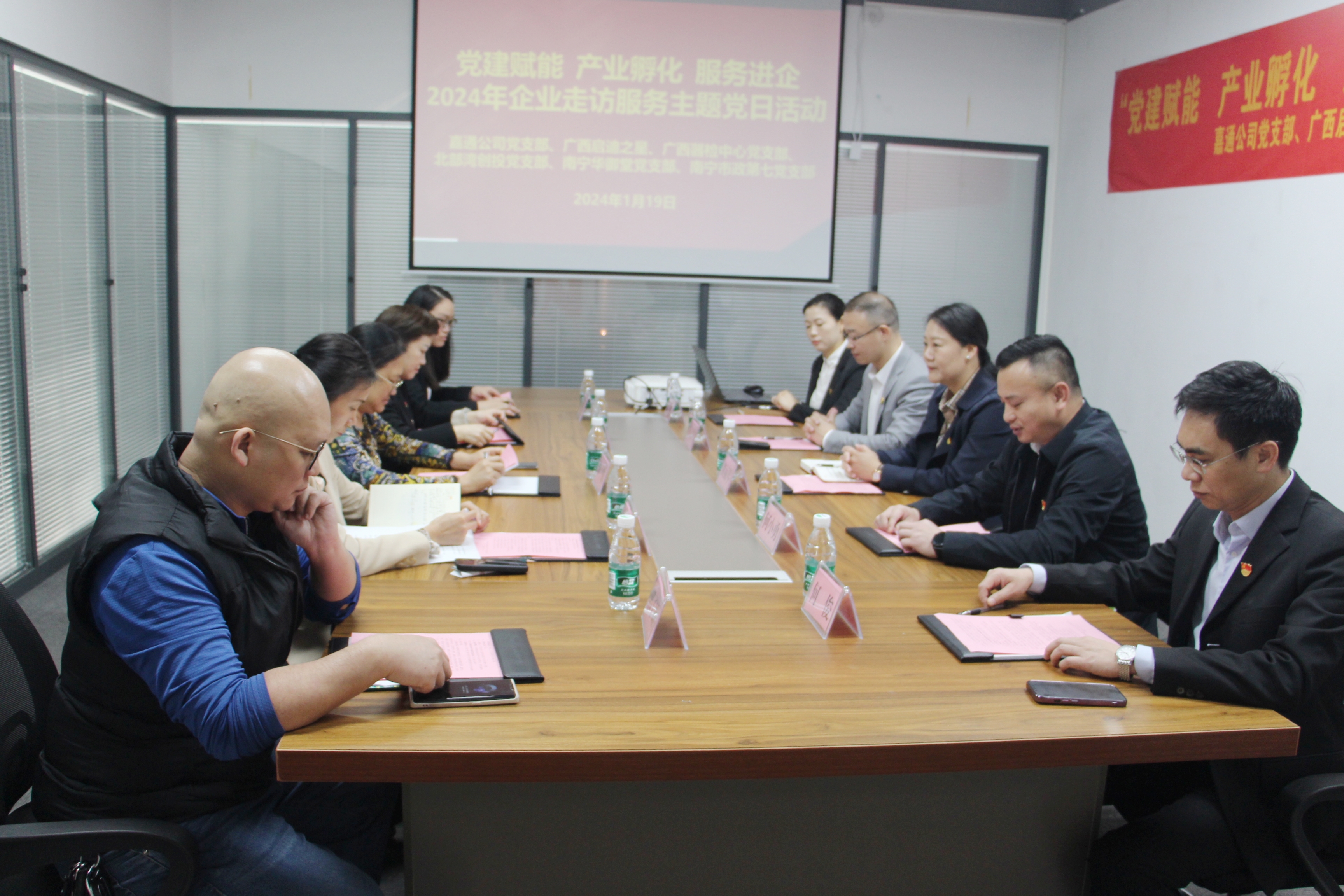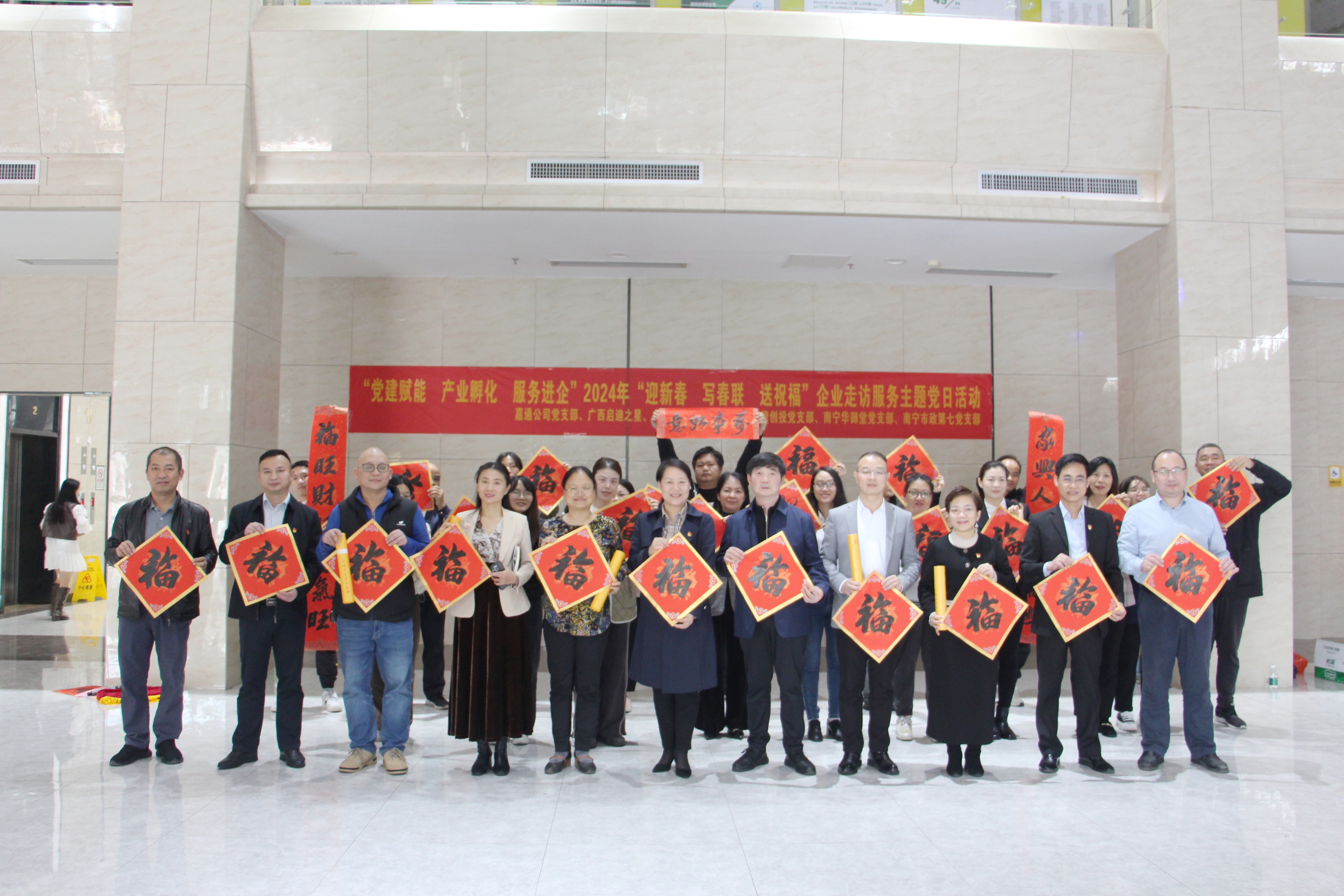 为深化党建与业务融合,通过党建引领提升企业服务质量,发挥好产业经济稳定器功能,以做强“链上党建”推动产业高质量发展,1月19日,嘉通公司党支部深入金凯工业园联合广西启迪之星公司、广西器检中心党支部、北部湾创投党支部、南宁华御堂党支部、南宁市政第七党支部开展“党建赋能 产业孵化 服务进企”2024年“迎新春 写春联 送祝福”企业走访服务主题党日活动,嘉通公司党支部党员代表及职工代表参加本次活动。