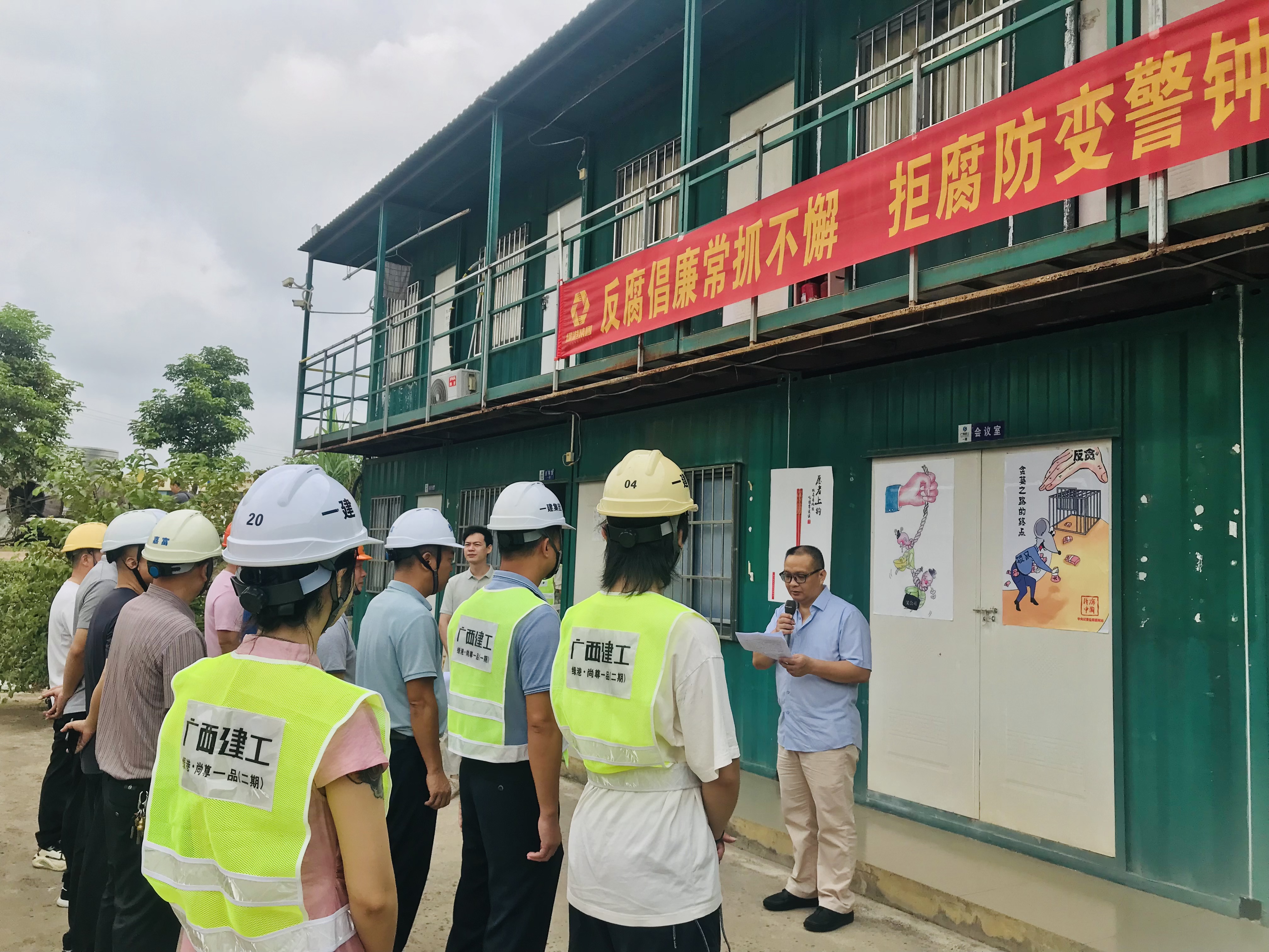 近日,为筑牢工程建设领域廉洁防线,夯实廉洁从业根基,推动全面从严治党、党风廉政建设和反腐败工作向纵深发展,MK国际在绿港·尚尊一品项目一线组织开展廉政文化进工地活动。集团党委委员、纪委书记兰赤寿主持活动并讲话,项目业主代表、施工单位、监理单位有关管理人员以及集团纪检监察审计部全体人员参加活动。