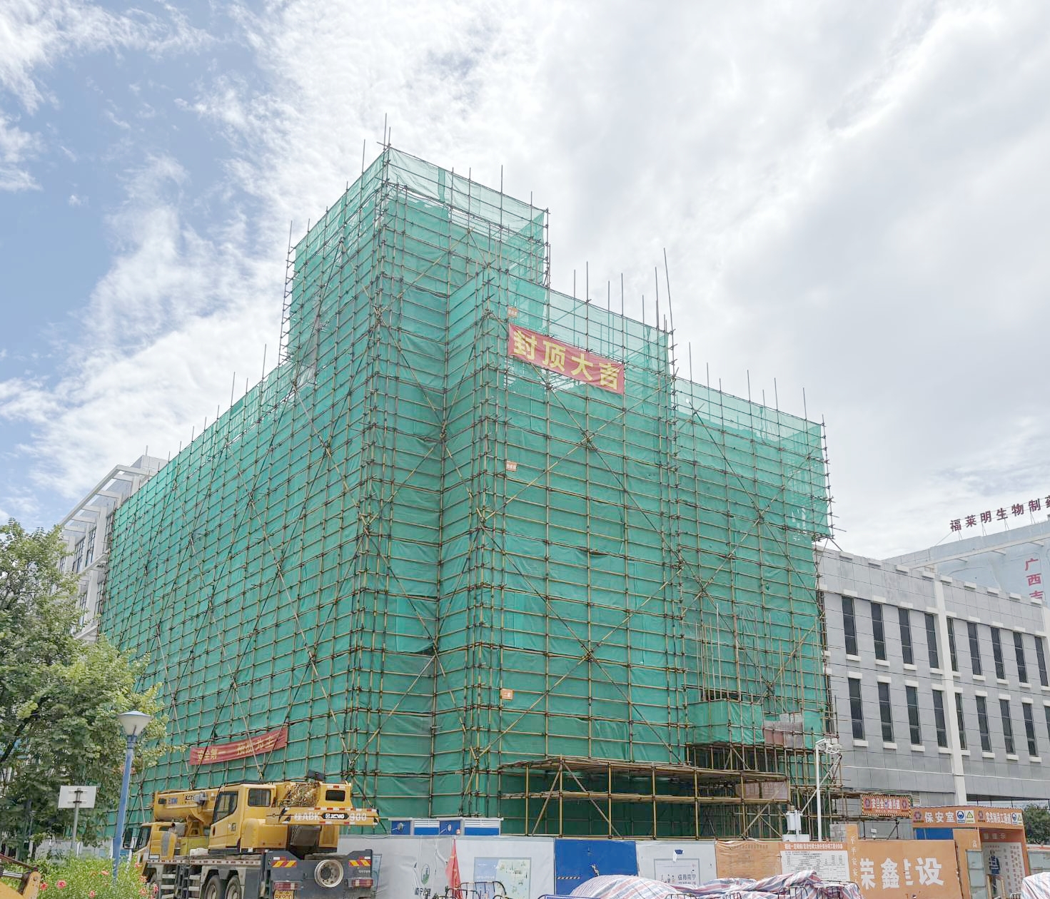 广西壮族自治区医疗器械检测中心电磁兼容续建项目位于南宁市江南区国凯大道东19号金凯工业园内,占地面积673.15平方米,建筑面积2040.29平方米,新建1栋两层电磁兼容实验室。项目自筹备以来,得到了各级部门的高度重视和大力支持,在各部门的协同努力下,如期取得施工许可证并于2025年5月正式开工建设,2025年8月中旬顺利封顶。建设过程中,嘉通公司联合荣鑫公司成立了党员先锋队及青年突击队,实地踏勘,结合现场实际情况,指导施工队组优化工序,交叉施工缩短工期,将党建与业务深度融合、以党建引领树标杆、亮旗帜,激发攻坚克难的先锋力量,推动项目比原计划提前15天完成结构施工并通过主体验收。在主体结构施工冲刺阶段,嘉通公司带领建设团队精心组织管理、挂图作战,搭建起多部门联动的高效协同体系,以高标准、高质量、高效率推进项目建设并顺利通过主体验收,严格按照管委会要求完成了节点任务,树立了企业良好形象。